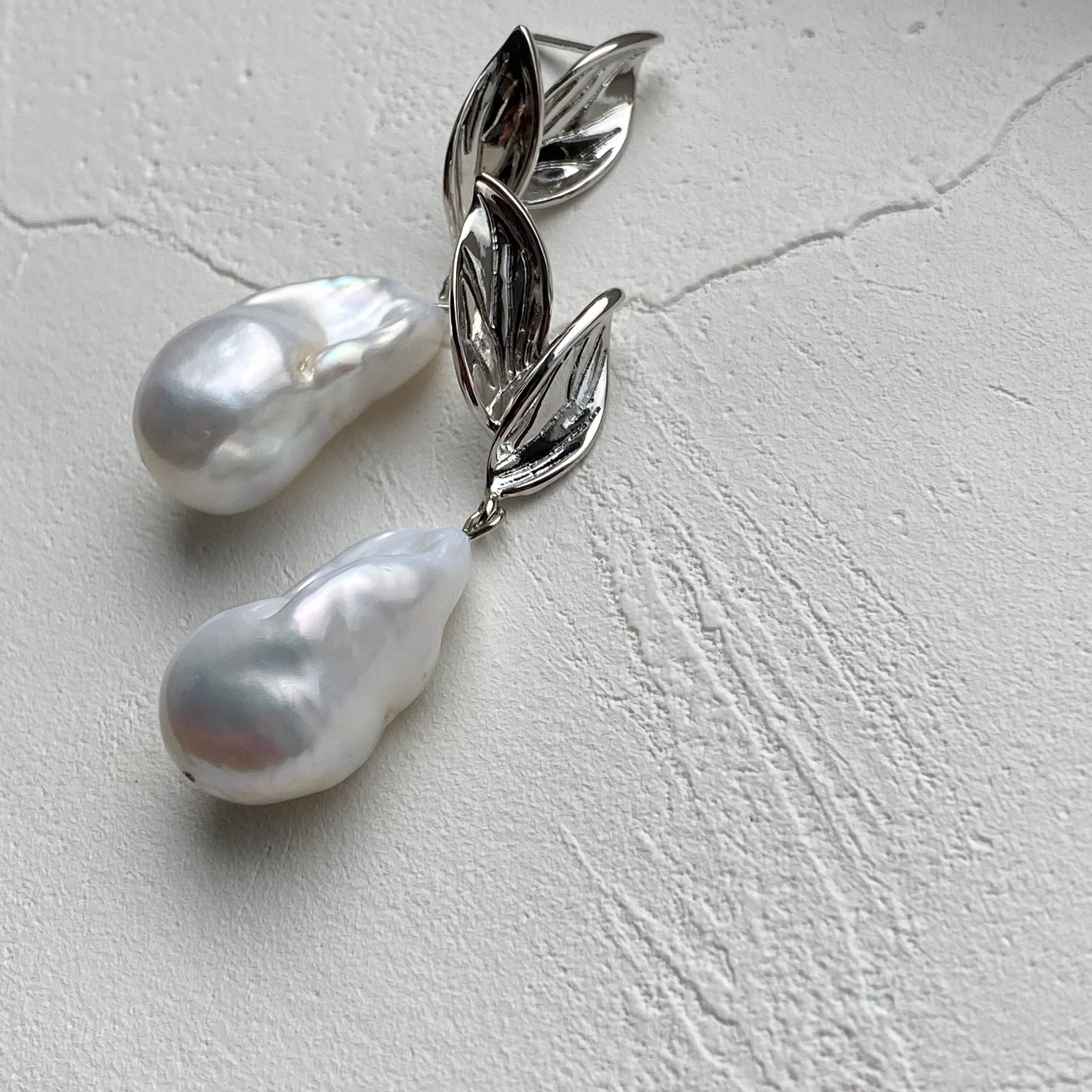 【リーフモチーフ】バロックパールピアス バロックパールイヤリング パールピアス パールイヤリング