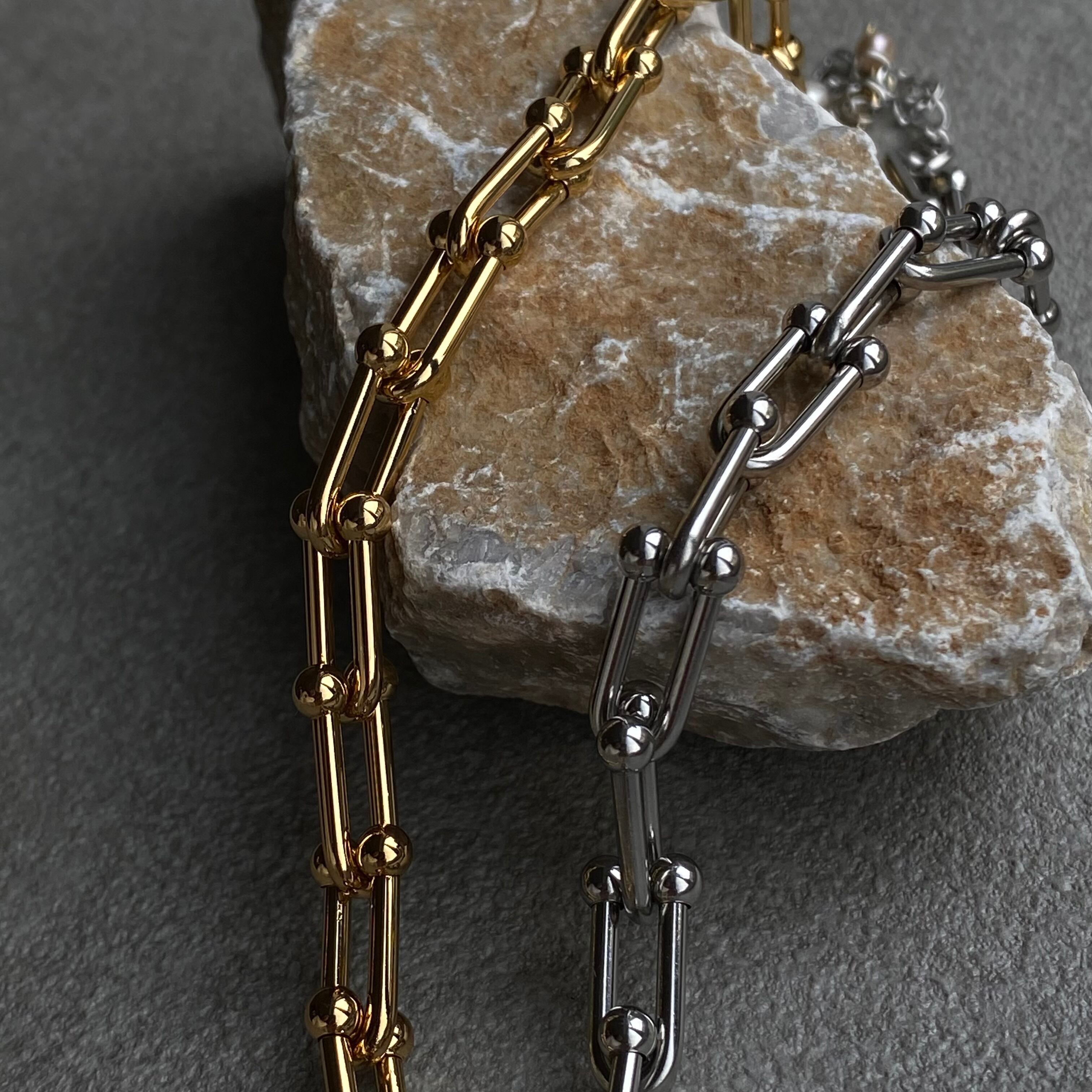 【gold】数量限定大人気デザイン 316Lステンレスネックレス Uチェーンネックレス 大ぶりチェーン