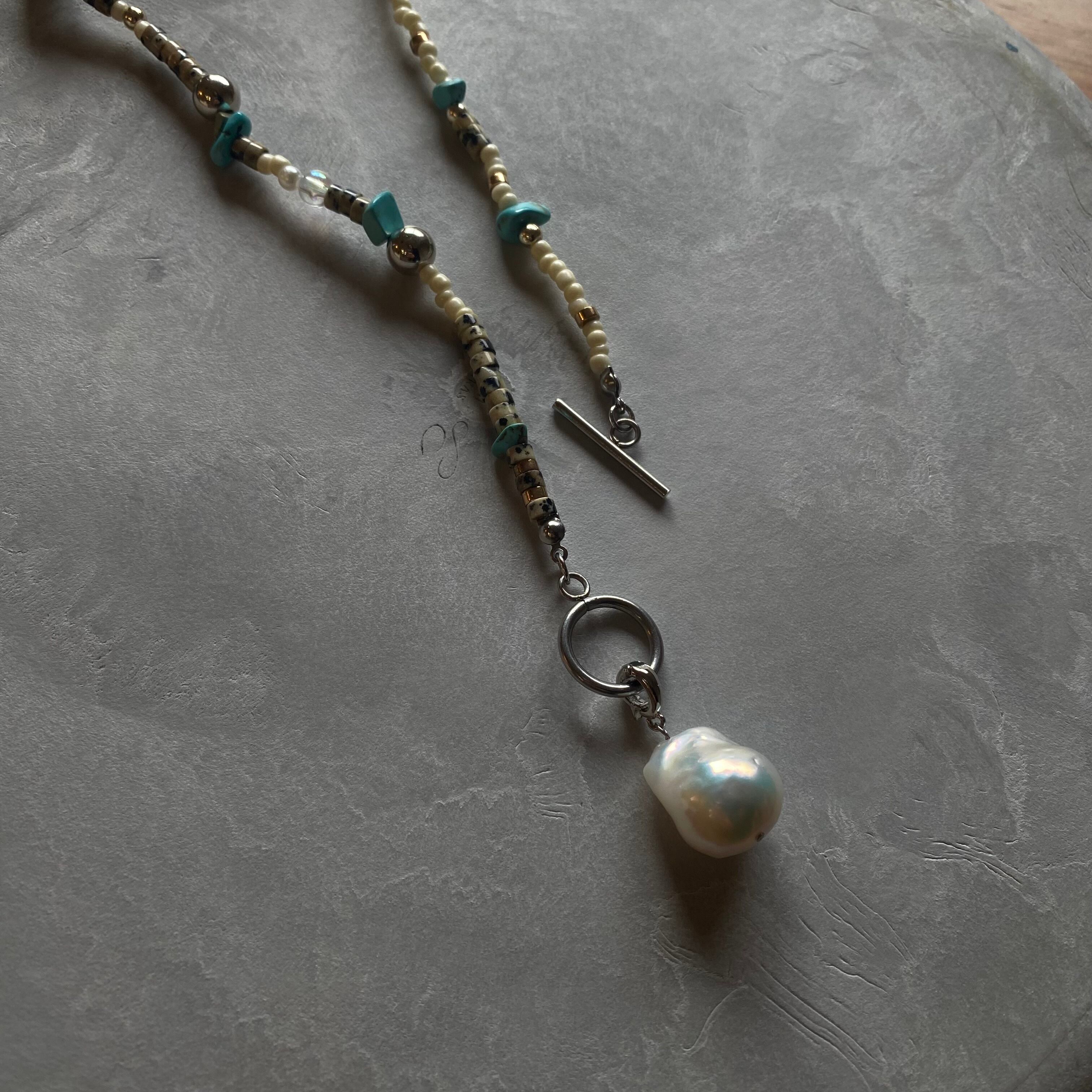 【1点物】2wayビーズネックレス マンテルネックレス バロックパールネックレス