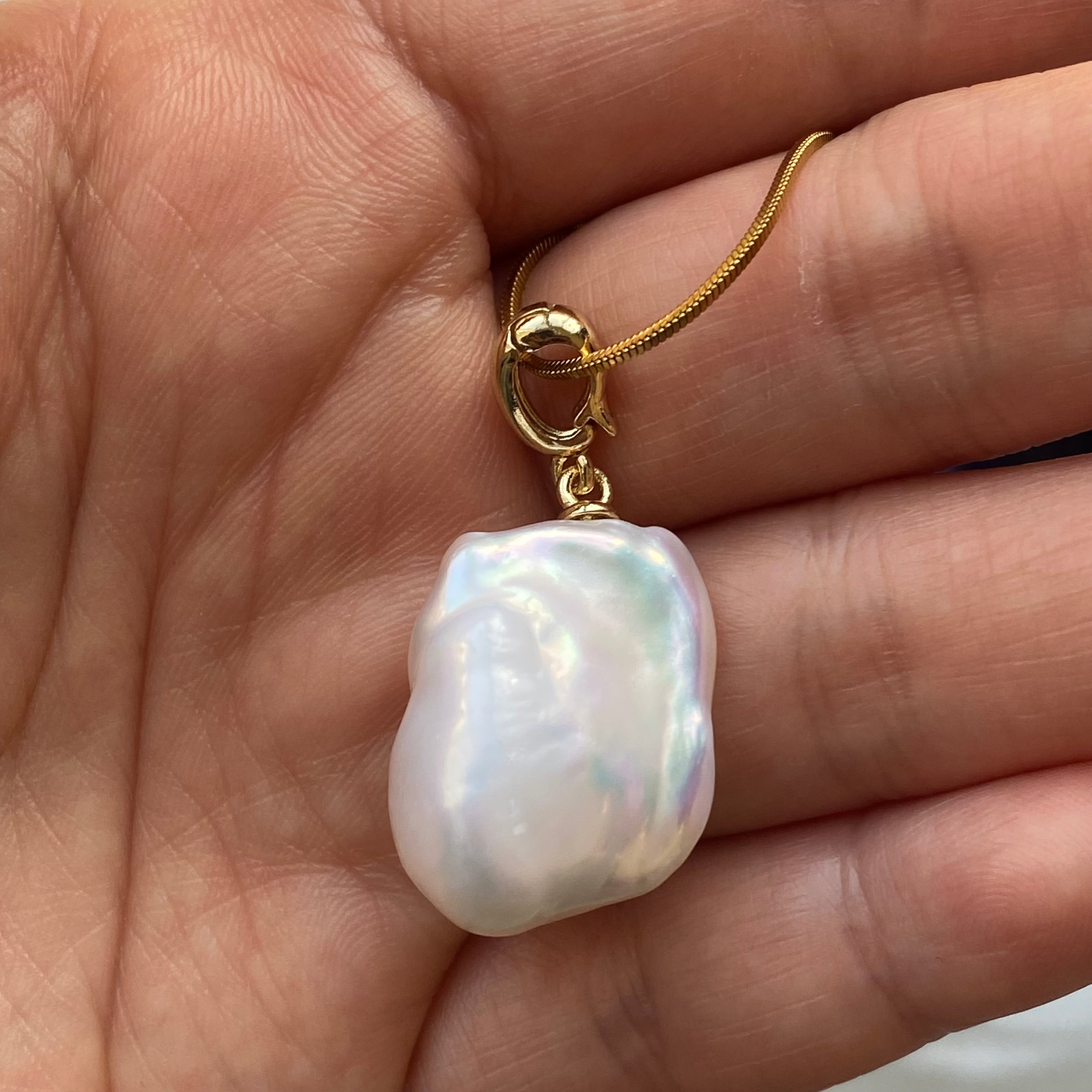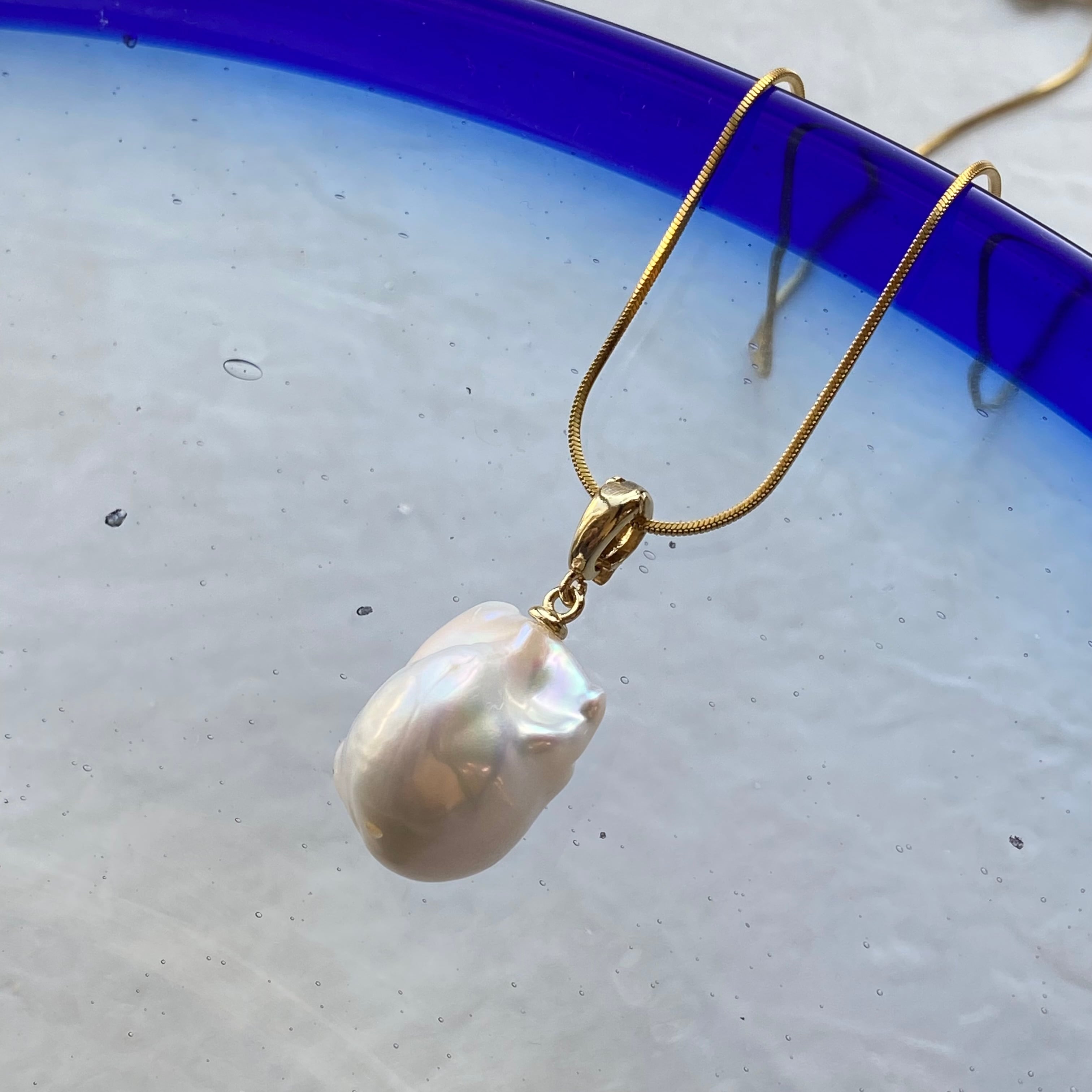 淡水バロックパールは自然から生み出されております。表面には、小さな凹凸や自然由来の痕跡が見られることがございます。これは自然由来の個性であり、ひと粒ごとに異なる美しさを際立たせる要素として