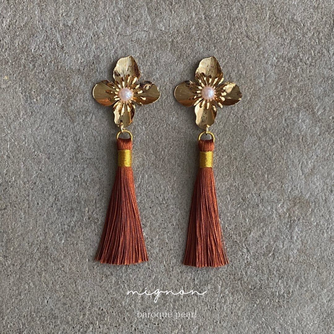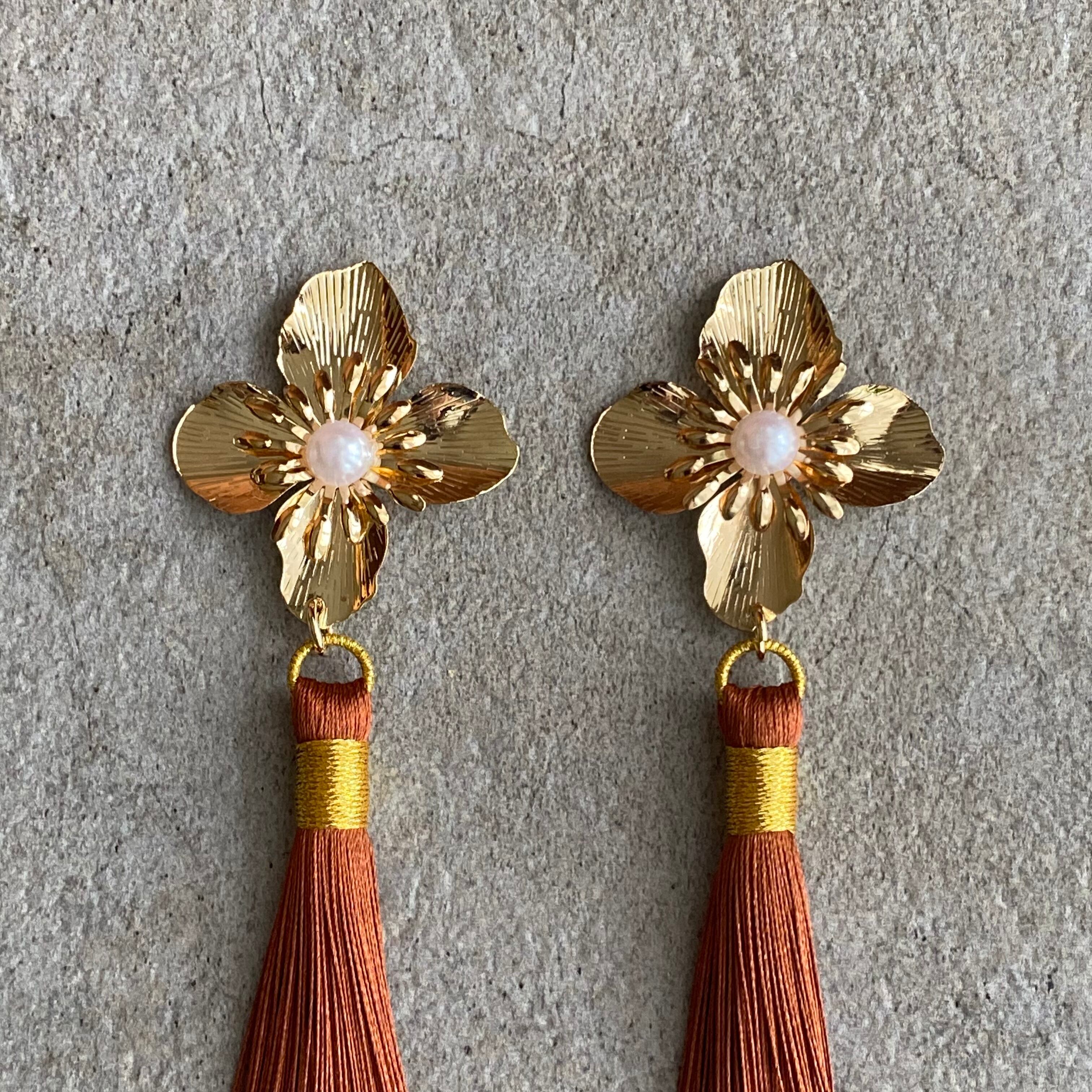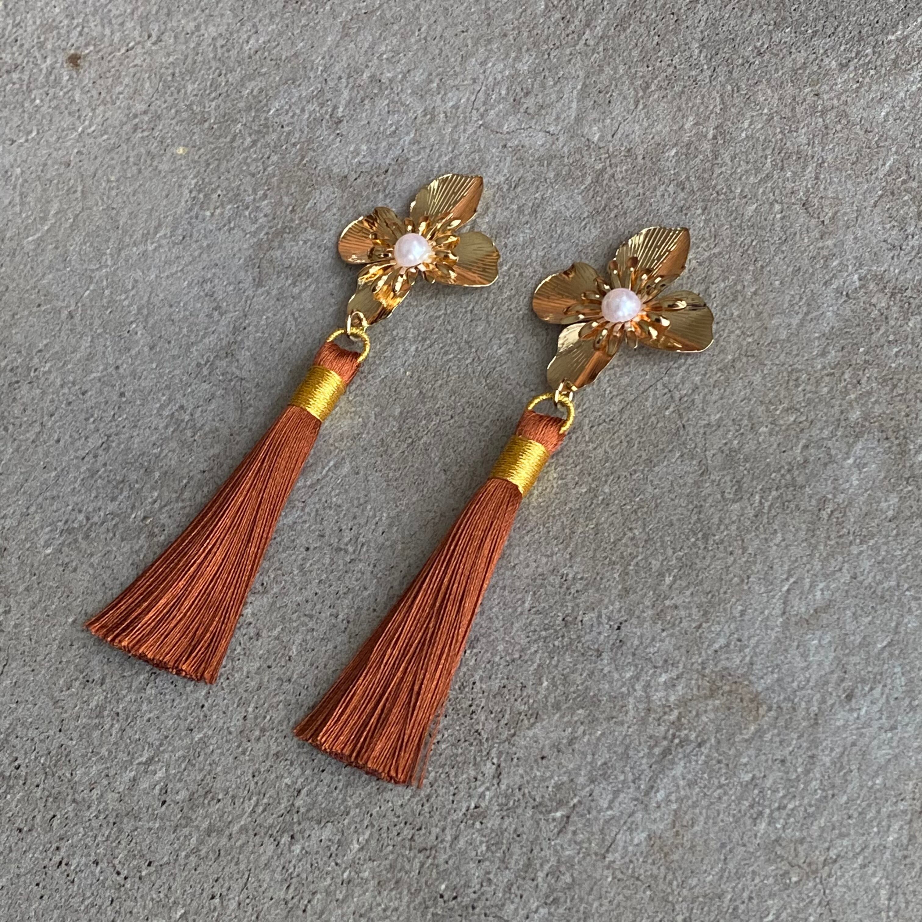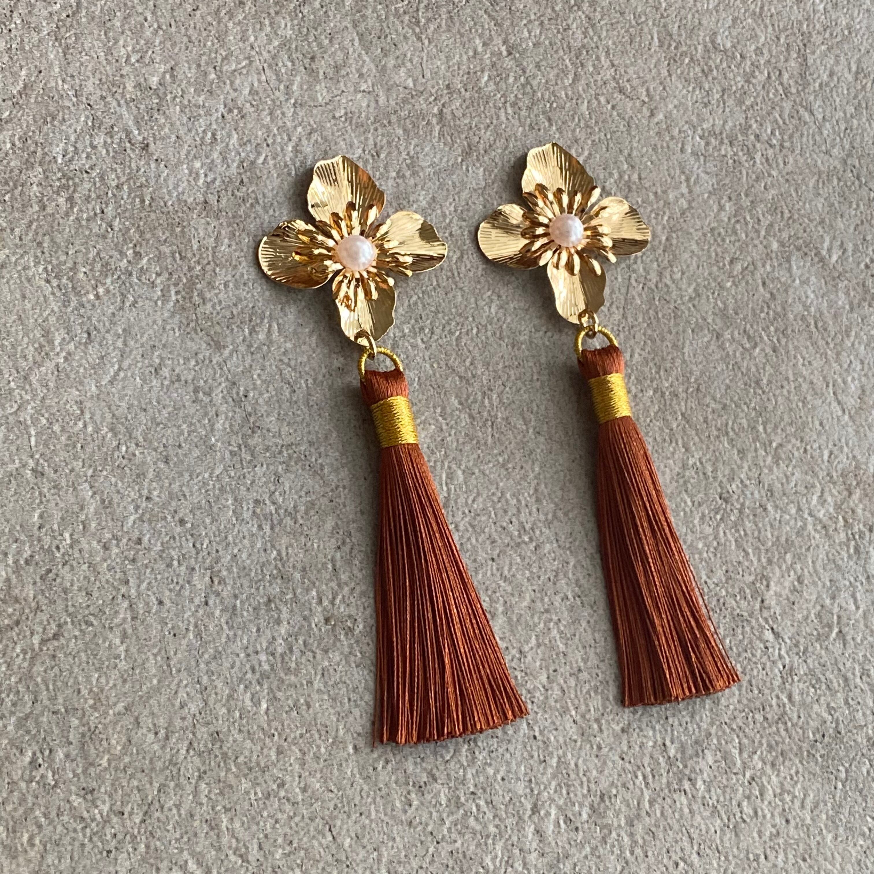 フラワータッセルイヤリング タッセルピアス