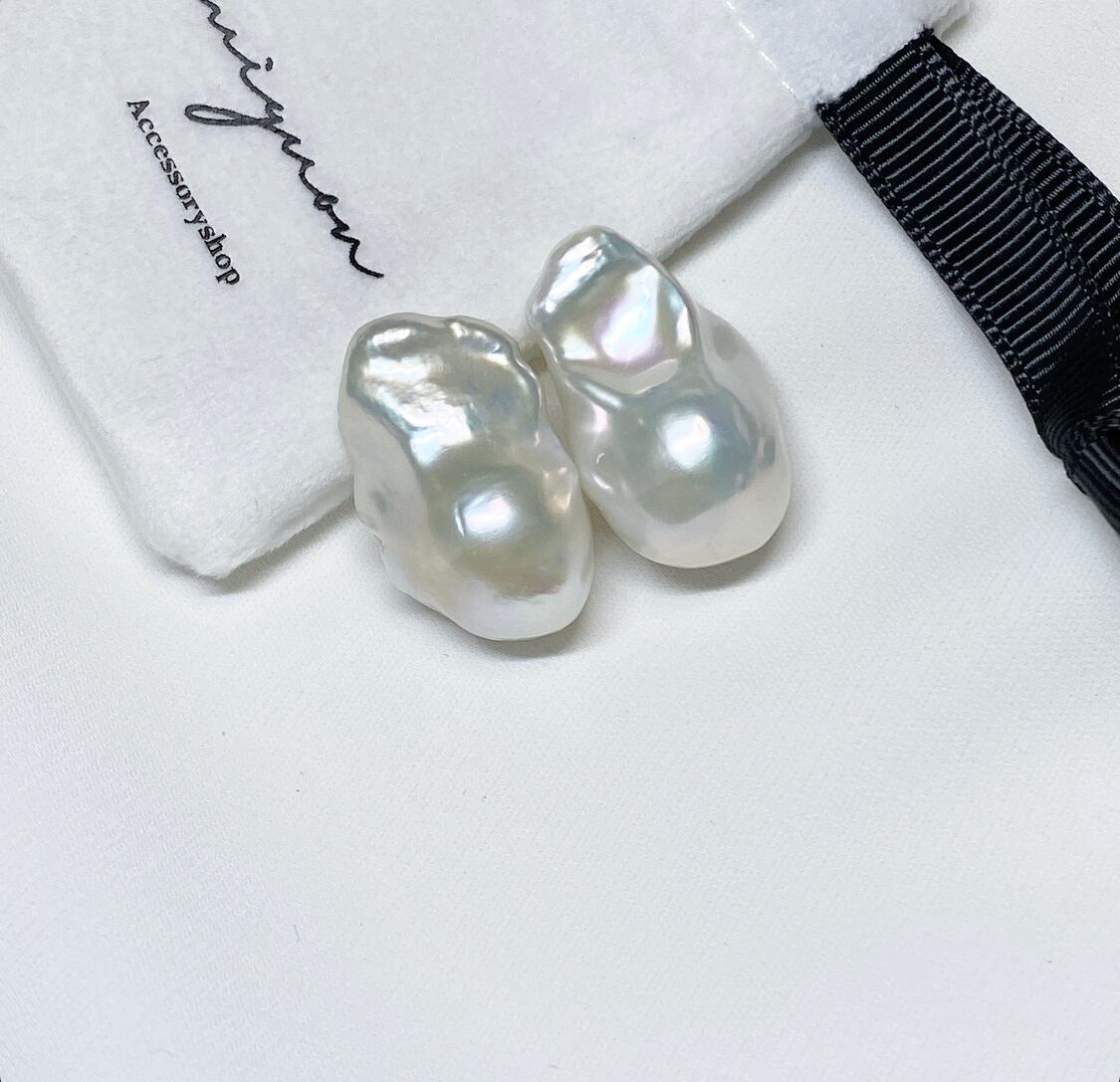 Sランク無穴バロックパールのピアスとイヤリングは、華やかなウェディングドレスや結婚式のアクセサリーとして最適です